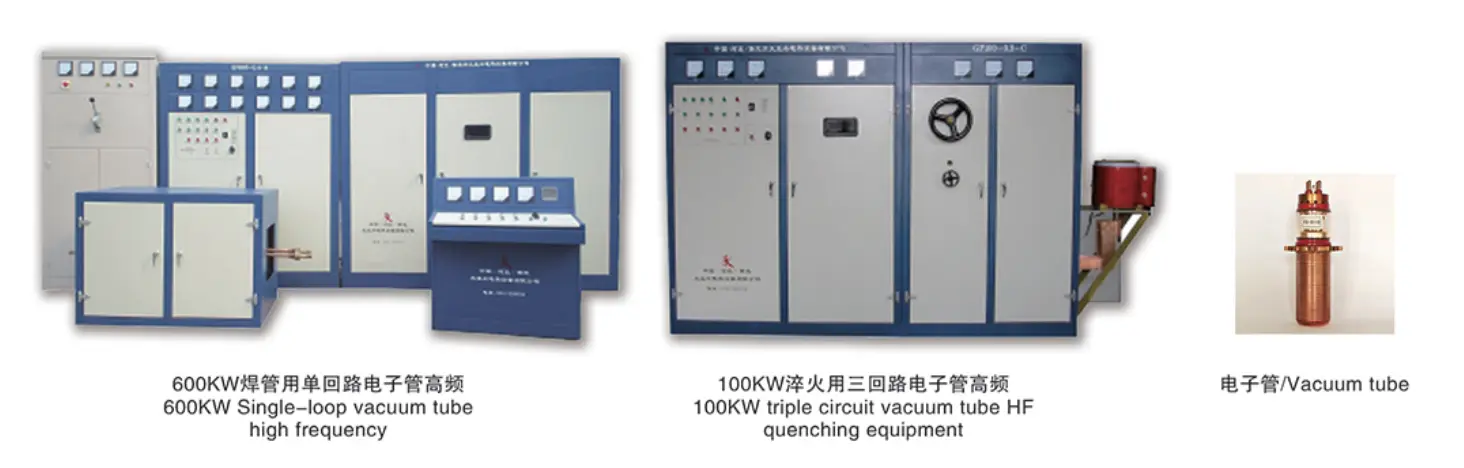 নীচের ফটোগুলি হল 600KW সিঙ্গেল-লুপ ভ্যাকুয়াম টিউব হাই ফ্রিকোয়েন্সি এবং 100KW ট্রিপল সার্কিট ভ্যাকুয়াম টিউব এইচএফ নিভেন সরঞ্জাম৷
